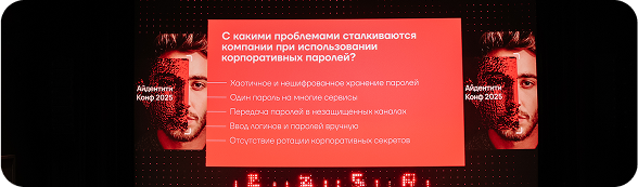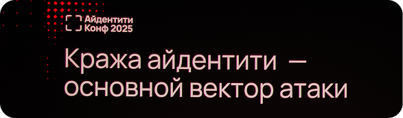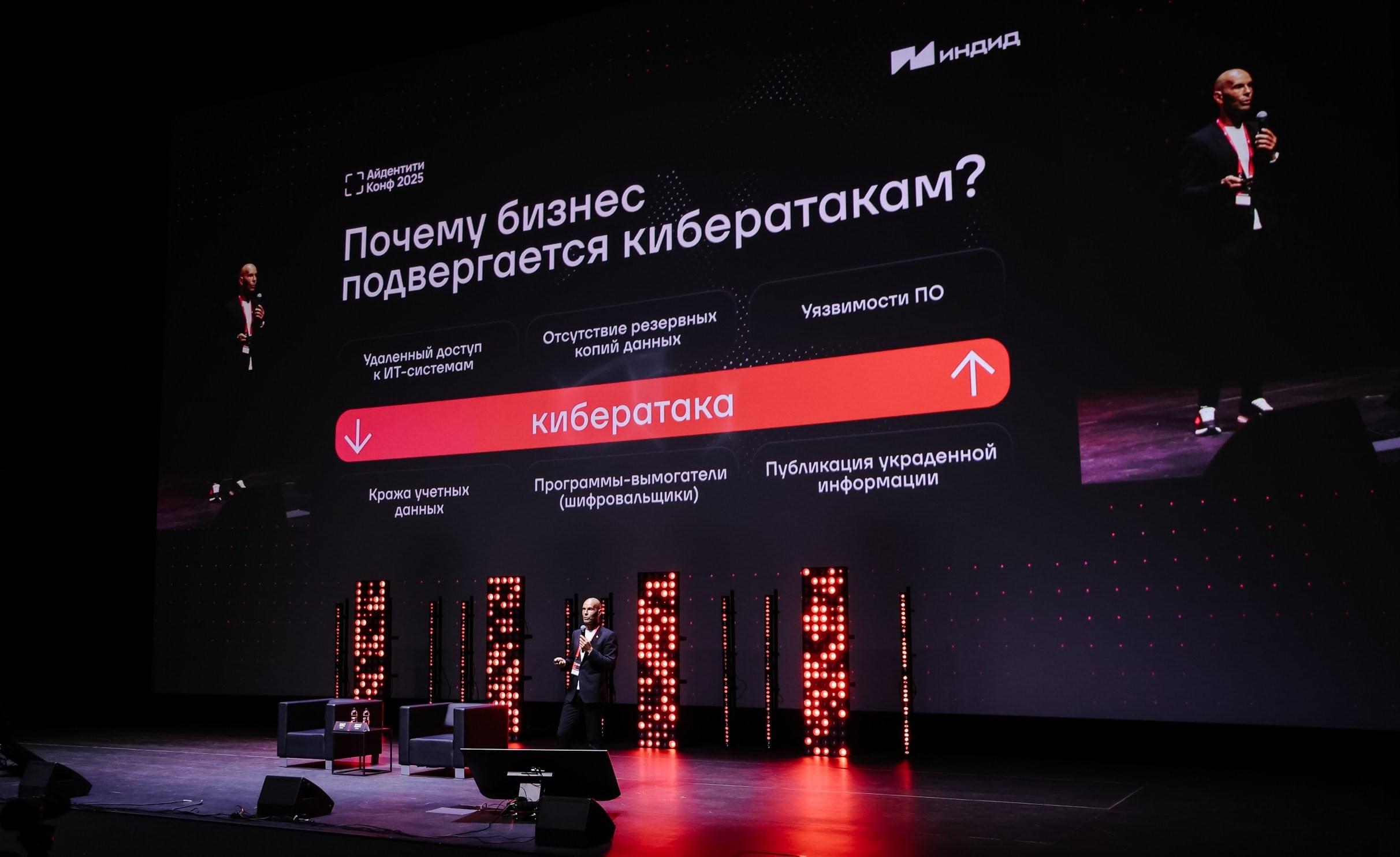 В начале деловой программы Андрей Лаптев, директор продуктового офиса Индид, представил доклад на тему «Identity — новый периметр информационной безопасности». В своем выступлении он рассказал о ключевых трендах, которые сегодня оказывают наибольшее влияние на безопасность айдентити российских организаций. Андрей рассказал, что за последние несколько лет кража айдентити стала основным вектором атак злоумышленников, а в 2025 году, согласно исследованиям, объем скомпрометированных учетных данных вырос более чем на 150%.